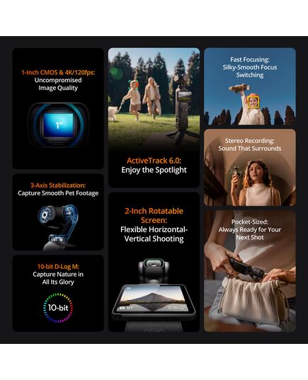 Совершенно новый DJI Osmo Pocket 3 — это мощная карманная видеокамера, которая переосмысливает возможности креативной съемки. Благодаря крупному сенсору, интеллектуальным режимам и усовершенствованной стабилизации он превращает любое мгновение в кинематографичное произведение.