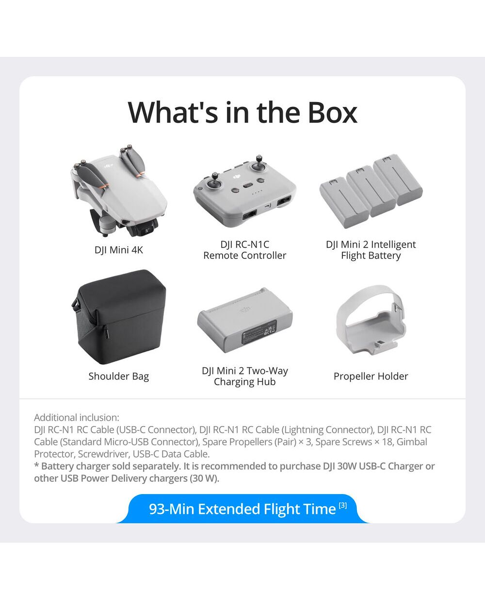 Этот набор включает все необходимое для продолжительных съемочных сессий, делая ваши аэроприключения по-настоящему беззаботными.