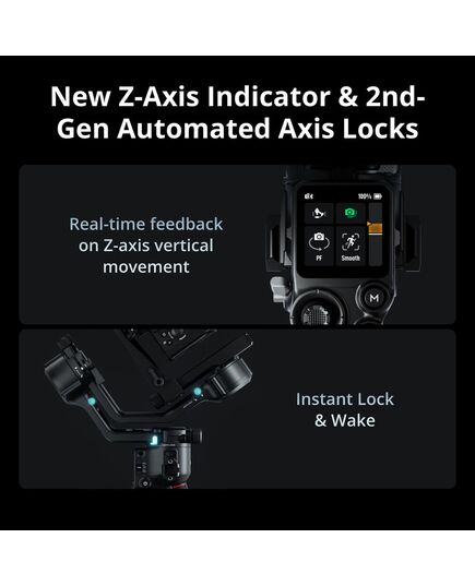 Стабилизатор оснащен фиксированным сенсорным OLED-экраном с новой функцией автоматической блокировки. После активации блокировки экран отображает текущий режим работы стабилизатора и данные джойстика с пониженной яркостью, что предотвращает случайные переключения и экономит заряд батареи.