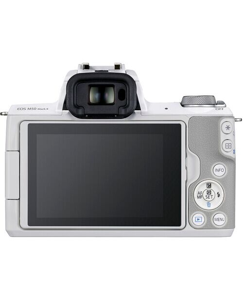EOS M50 Mark II имеет LCD-экран с поворотной конструкцией, что делает его очень удобным для селфи и видеоблогинга. Экран также поддерживает сенсорное управление, позволяя легко выбирать фокусные точки или менять настройки.