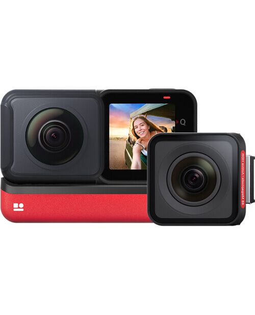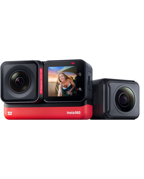 Одна из ключевых конфигураций модульной системы экшн-камер ONE RS. Twin Edition включает основной модуль, 4K Boost Mod, 360 Mod и необходимую батарейную базу, которая удерживает модули вместе.