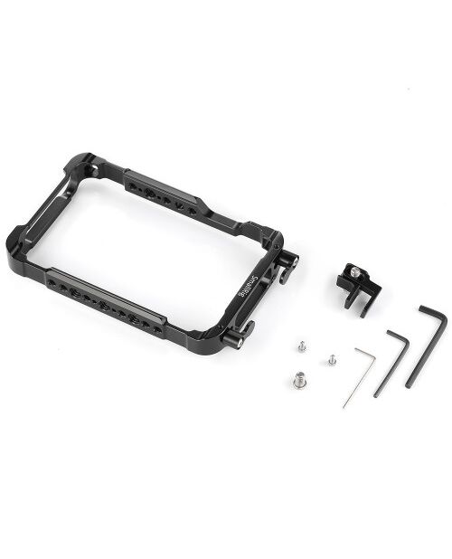 Клетка плотно облегает монитор, обеспечивая защиту от повреждений и удобство использования. Верхняя и нижняя части оснащены рейками NATO для крепления дополнительных аксессуаров.