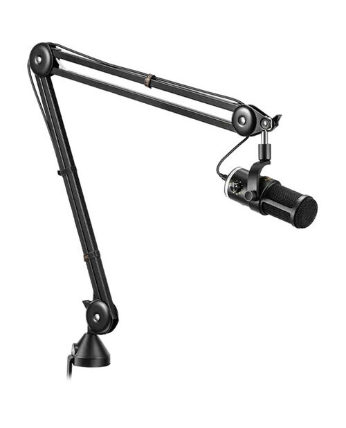 Корпус микрофона выполнен из металла, а встроенный фрикционный шарнир позволяет легко регулировать его положение. В комплекте идет регулируемая стойка-журавль, которая обеспечивает удобное размещение микрофона во время стримов или записи подкастов.