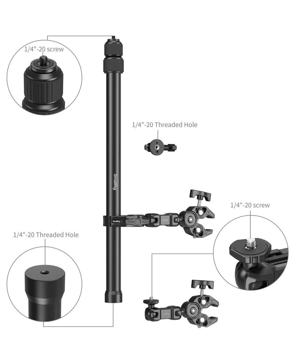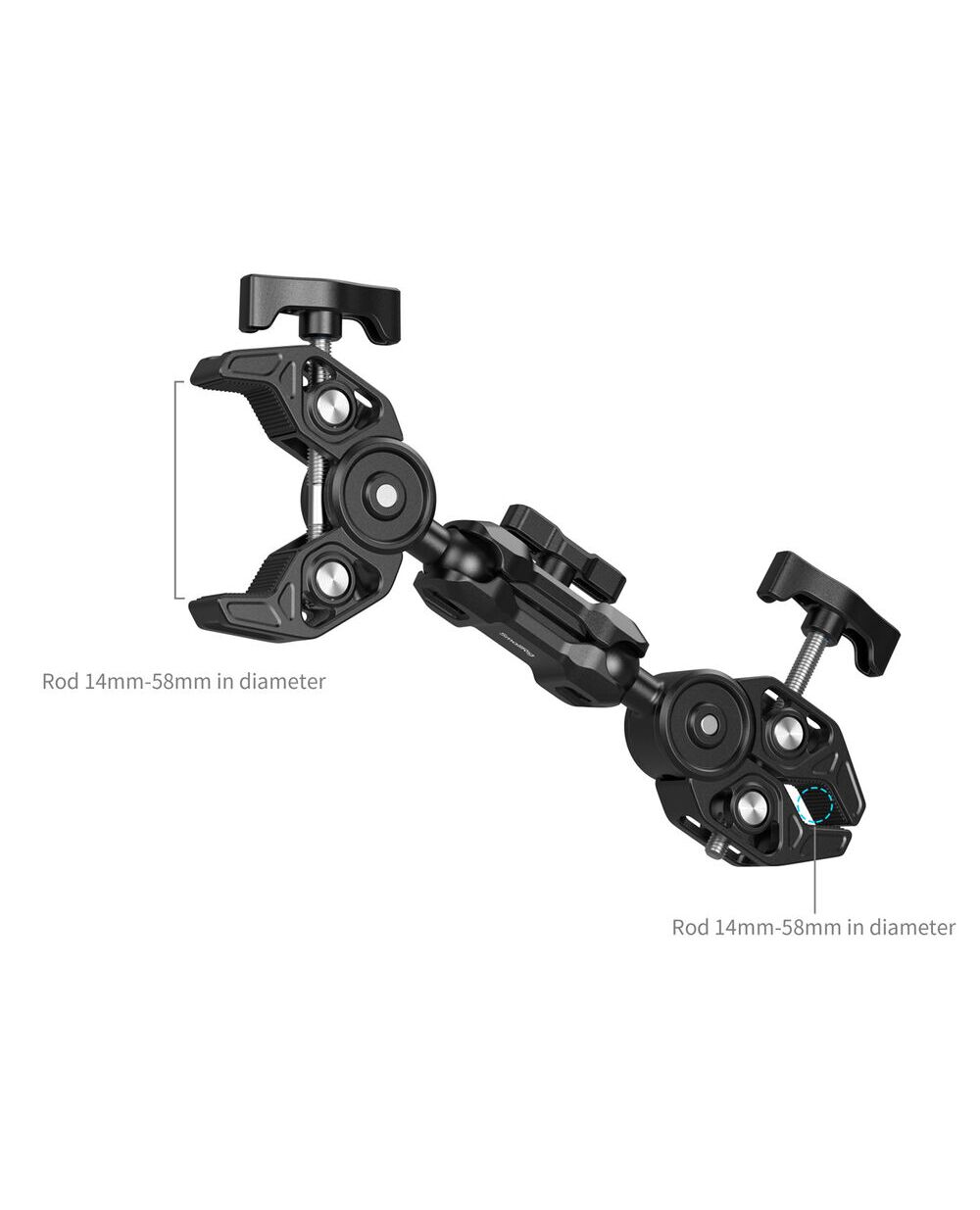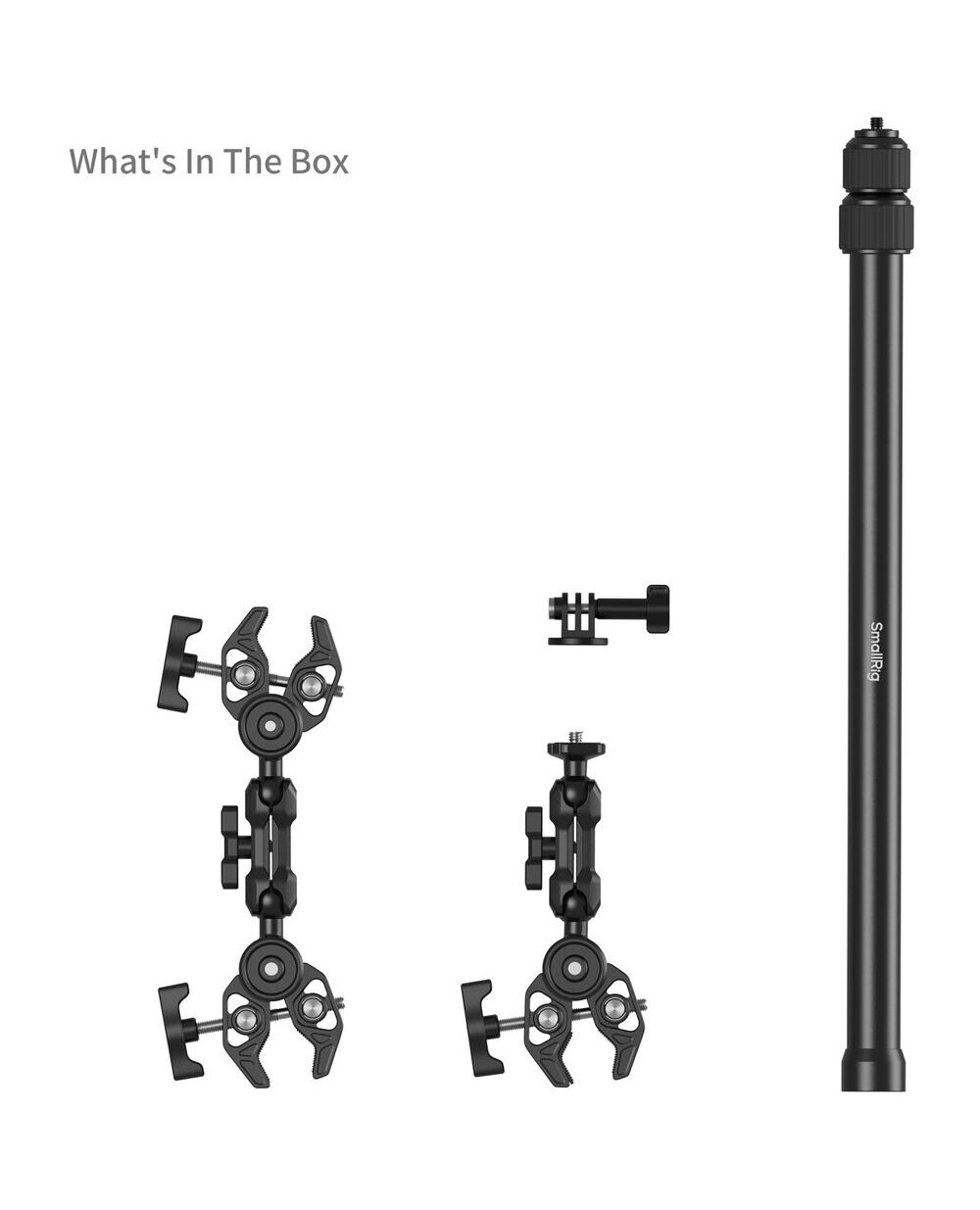 Cycling Camera Mount Set от SmallRig предоставляет вам настраиваемую конфигурацию крепления для надежной фиксации любой экшн-камеры на руле горного или любого другого велосипеда. В набор входит универсальный зажим с двойной шаровой головкой на 360° и крабовидный зажим с общим диапазоном обхвата от 13 до 58 мм. Телескопический удлинитель камеры с диапазоном высоты от 46 до 119 см помогает достичь оптимального кадрирования. Вся конфигурация обладает динамической грузоподъемностью 0,5 кг, а также включает винт 1/4"-20 и трехконечный адаптер для совместимости с большинством экшн-камер.