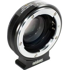 Metabones 0.58x Speed Booster Canon EF Lens to BMPCC T уменьшает кроп-фактор камеры BMPCC с 3.02x до 1.75x и повышает светосилу объективов до f/0.74, предназначен специально для камеры Blackmagic Pocket Cinema (BMPCC) с байонетом Micro-4/3.
