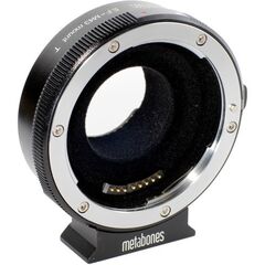 Интеллектуальный адаптер T от Metabones для объективов Canon EF и EF-S позволяет использовать эти объективы на камерах с креплением Micro Four Thirds. Он поддерживает автофокус, стабилизацию изображения и управление диафрагмой через камеру, а также передает метаданные EXIF, если объектив их генерирует. Адаптер обеспечивает надежное соединение и высокое качество изображения, минимизируя световые потери и искажения.
