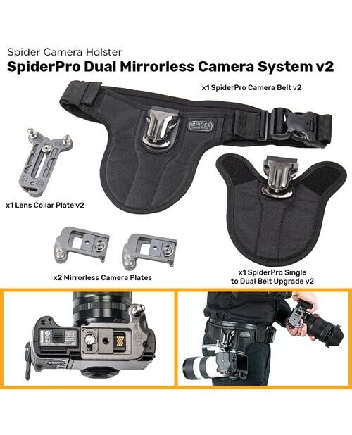 Новая версия системы Spiderpro Single Camera System v2 предлагает еще больше преимуществ и удобств. Усовершенствованная конструкция обеспечивает надежное крепление камеры, а улучшенный механизм быстрого доступа позволяет моментально вытащить камеру из крепления для съемки.