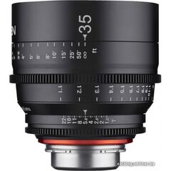 Rokinon's Xeen 35mm T1.5 - профессиональный кинематографический объектив с широкой максимальной апертурой T1.5 и оптимизированной конструкцией для максимального качества изображения. Обеспечивает широкий угол поля зрения и естественное воспроизведение цветов. Предназначен для ежедневного профессионального использования и удобства монтажа благодаря крепежной площадке "нога".