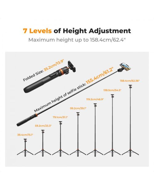 Благодаря 7-секционной конструкции ножек, монопод предлагает невероятную гибкость в настройке высоты. Вы можете легко адаптировать его под любой сценарий съемки — от динамичных селфи до статичных панорамных снимков с низкого угла.