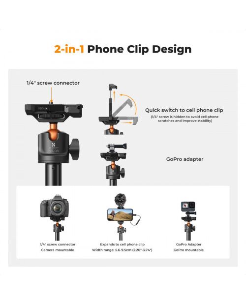 K&F Concept MS04 KF09.127V1 — это не просто монопод, а многофункциональная платформа, которая расширяет ваши творческие возможности и делает процесс съемки по-настоящему удобным и мобильным.