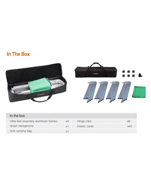 Складной фоновый комплект E-IMAGE MB42 - это идеальное решение для тех, кто работает в дороге и нуждается в быстрой и удобной системе фонов для создания контента. В набор входят четыре складные рамы, зеленое дно для хромакей, шесть шарнирных зажимов, эластичные шнуры и мягкая сумка для переноски. Благодаря огромным размерам 4 м в ширину и 2,4 м в высоту, этот фон подходит для фотографирования как в широком, так и в низком положении. Он идеально подходит для создания контента в различных ситуациях, включая фотосъемку в студии, на улице или в помещении.